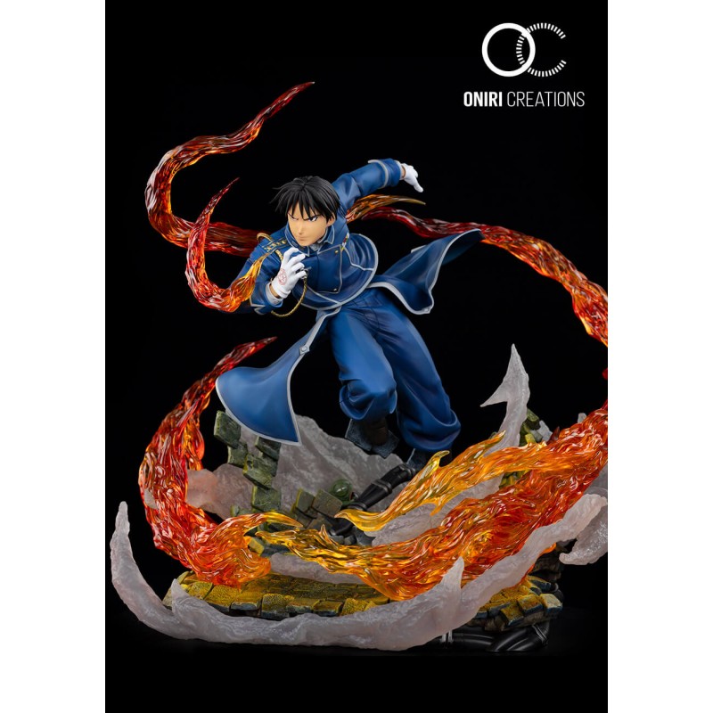 Après Edward Elric, nous continuons la gamme Fullmetal Alchemist avec le célèbre alchimiste de flammes, Roy Mustang. Personnage central de la série Brotherhood, Roy est un alchimiste d’État puissant doté d’un gant gravé d’un Cercle de transmutation lui permettant de créer du feu d’un simple claquement de doigts. Notre statue s’inspire de son combat face à Envy dans lequel Roy laisse parler sa colère et son incroyable pouvoir. Face à la déferlante de flammes, l’Homunculus ne peut rien contre le Colonel.