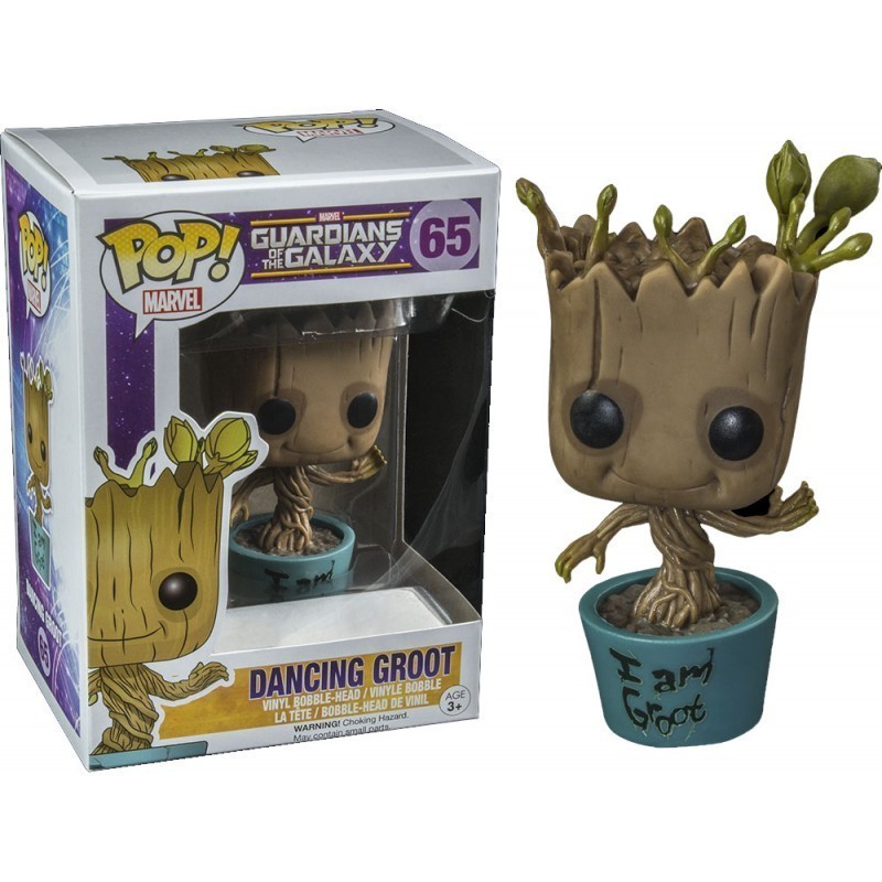 - Pop Collection- Figurine de Groot en verision Dancing avec l'inscription "i am groot" sur le pot- Pop Exclu- Hauteur d'environ 10 cm